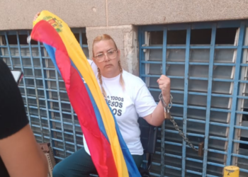 Evelis Cano se encadena en Zona 7 para exigir la liberación de su hijo y de todos los presos políticos