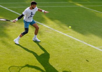 El serbio Novak Djokovic se entrenó este domingo por primera vez en Wimbledon, después de la intervención en el menisco...