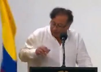 El presidente de Colombia Gustavo Petro se llevó un susto cuando, en medio de un discurso, recibió un golpe en...