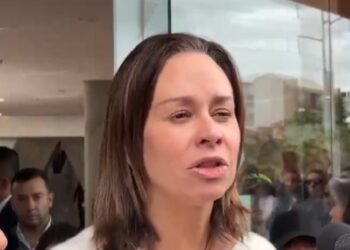 María Claudia Tarazona, esposa del precandidato Miguel Uribe Turbay, quien continúa en estado crítico tras el atentado que sufrió el...