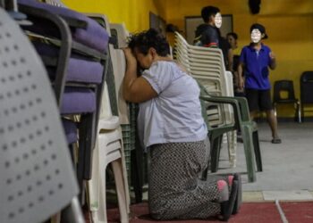 Un centenar de migrantes de diversas nacionalidades que se encuentran resguardados en un albergue de la fronteriza ciudad de Tijuana...