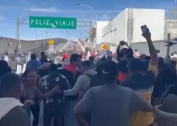 Unos 2.000 migrantes avanzaron hasta la mitad de Puente Internacional Santa Fe, línea divisoria entre México-Estados Unidos, en Ciudad Juárez,...