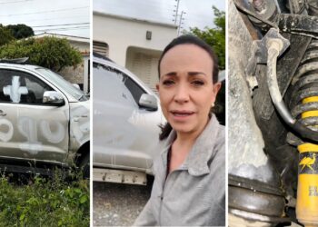 La líder opositora María Corina Machado denunció este jueves que sufrió un atentado contra los vehículos de su caravana esta...