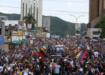 Miles de habitantes del estado Carabobo desbordaron este sábado la avenida Cedeño de Valencia para recibir la "caravana de la...