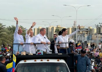 La líder opositora María Corina Machado y el candidato presidencial unitario, Edmundo González, visitan este sábado 13 de julio el...