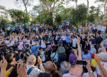 Una multitud recibió, la tarde de este jueves, a la líder opositora María Corina Machado en la ciudad de Porlamar,...