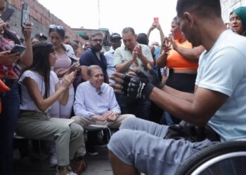 El candidato presidencial unitario, Edmundo González Urrutia, se reunió este viernes con líderes sociales de Caracas en El Cementerio, en...