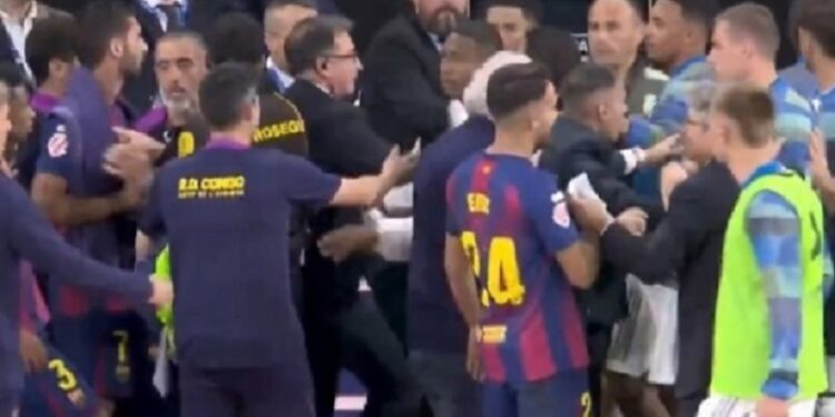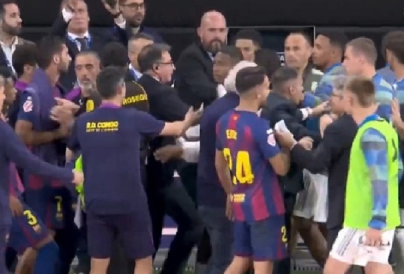 Continuó Vinícius con la disputa, que alcanzó cotas mayores. Lamine invitó a ambos a seguir discutiendo fuera del terreno de juego y fue Vinícius el que corrió hacia Lamine, teniendo que ser sujetado por hasta cuatro integrantes del cuerpo técnico del Real Madrid.