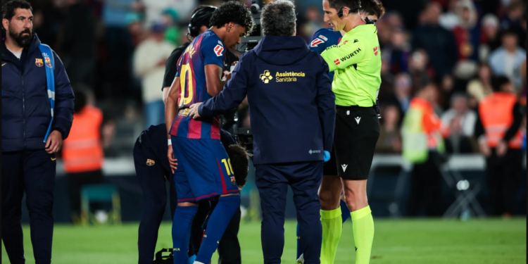 El club catalán ha informado de que Lamine Yamal, que se lesionó en el minuto 40 del partido ante el Celta, justo después de marcar el penalti que le dio la victoria a su equipo (1-0), seguirá un tratamiento conservador.