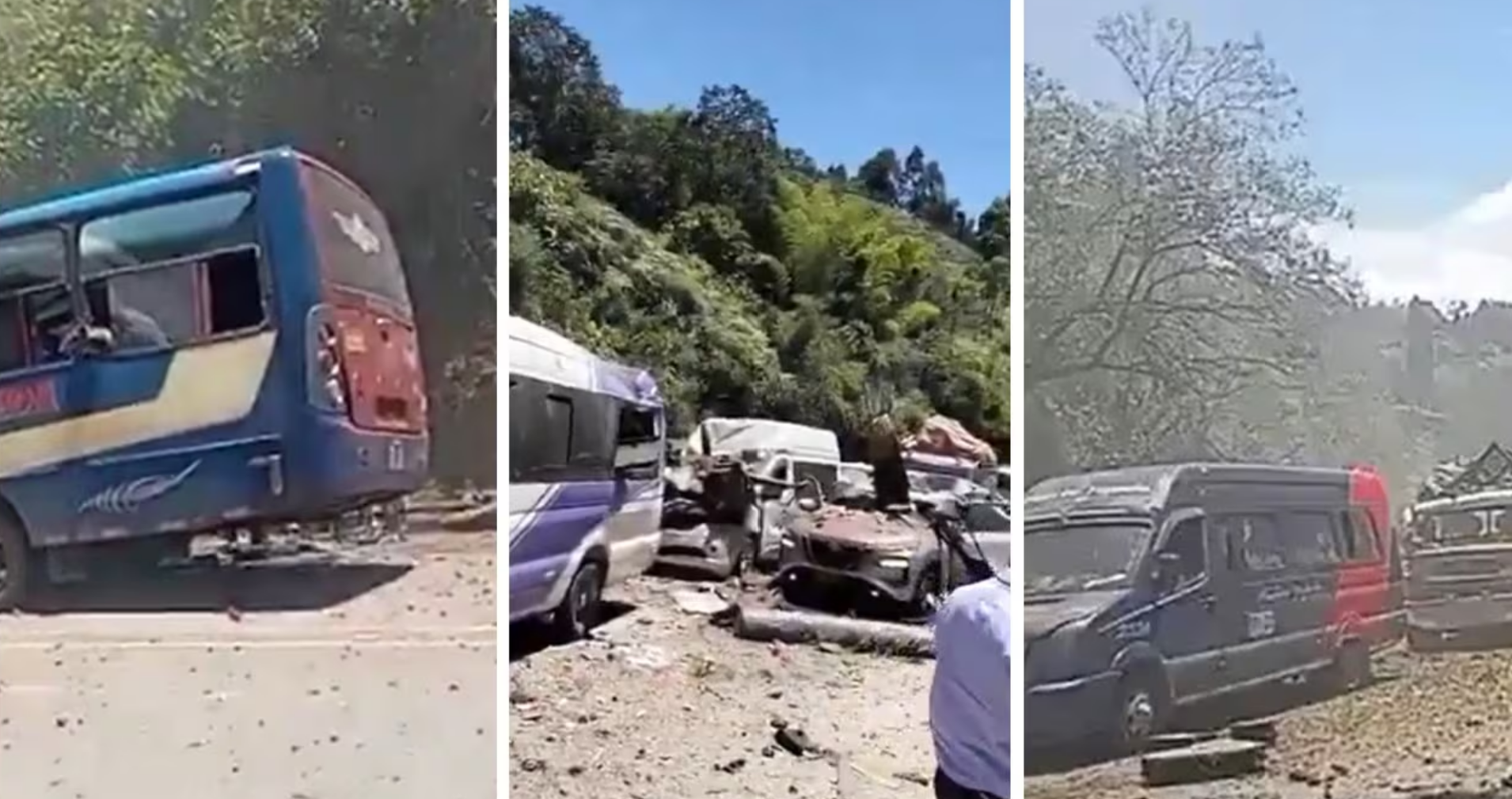 La onda explosiva no solo destruyó el autobús sino otros 15 vehículos que circulaban en ese momento y abrió un enorme cráter en la Panamericana, la principal carretera del suroeste de Colombia, donde las imágenes muestran un enorme rastro de destrucción, con cuerpos tendidos en la carretera, como en un escenario de guerra.