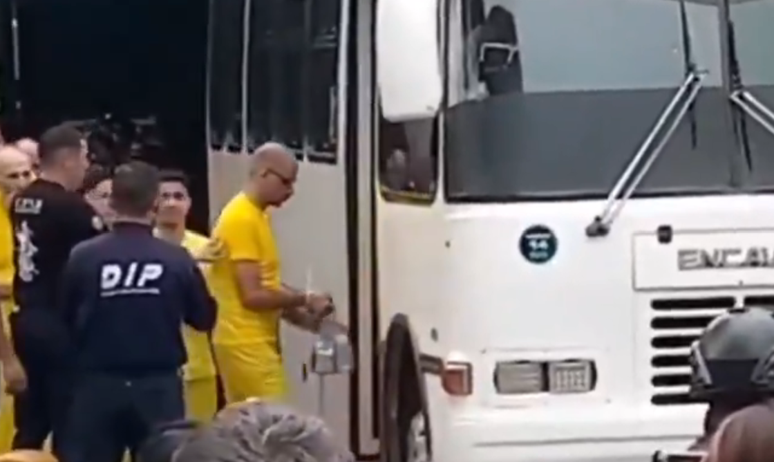 Los prisioneros fueron sacados esposados, vestidos con ropa amarilla y subidos a un autobús, mientras eran vigilados por agentes con uniformes de la División de Investigaciones Penales (DIP) de de la Policía Nacional Bolivariana (PNB).