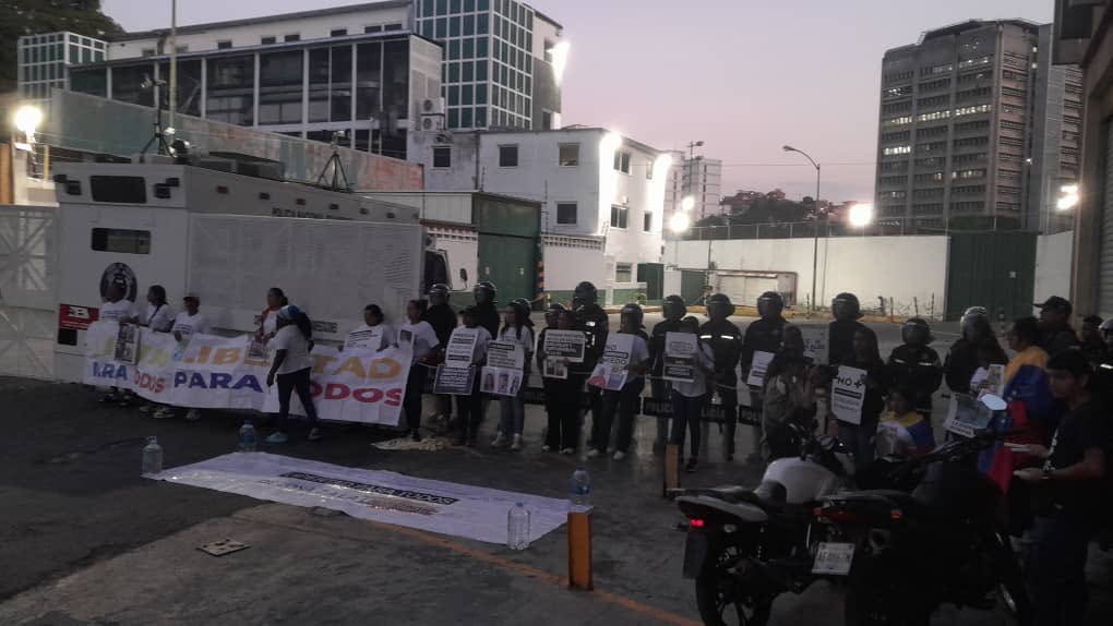 Familiares de presos políticos en Venezuela se encadenaron este jueves a las afueras de un comando de la Policía Nacional Bolivariana (PNB), conocida como Zona 7, en el este de Caracas, para protestar por la decisión del Parlamento de aplazar el debate sobre el proyecto de ley de amnistía.