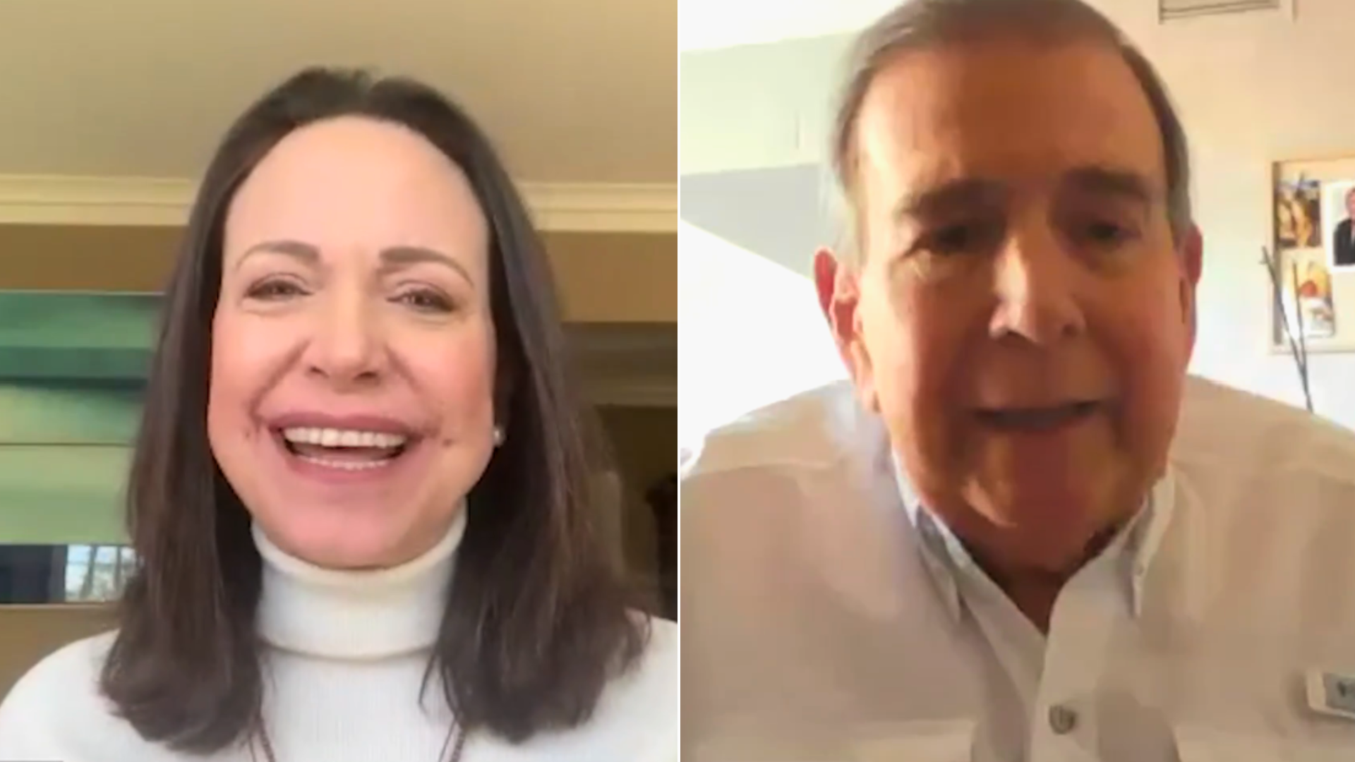 En el video, Machado aparece virtualmente junto a González Urrutia, celebrando la oportunidad de reencontrarse con la comunidad venezolana en Europa.