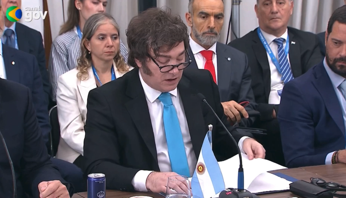Durante su intervención en la cumbre del Mercosur celebrada este sábado en Brasil, el presidente argentino Javier Milei llamó a los países de la región y a la comunidad internacional a respaldar la presión ejercida por Estados Unidos sobre el régimen de Nicolás Maduro, al que calificó como un “narcoterrorista”.