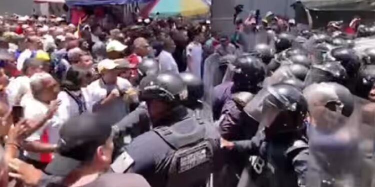 Durante la cobertura de la marcha este #9Abr, al menos 10 periodistas y trabajadores de la prensa fueron golpeados, rociados con gas pimienta y robados por efectivos de la PNB que impidieron el avance de la… pic.twitter.com/wd0FSKhPC5— SNTP (@sntpvenezuela) April 9, 2026