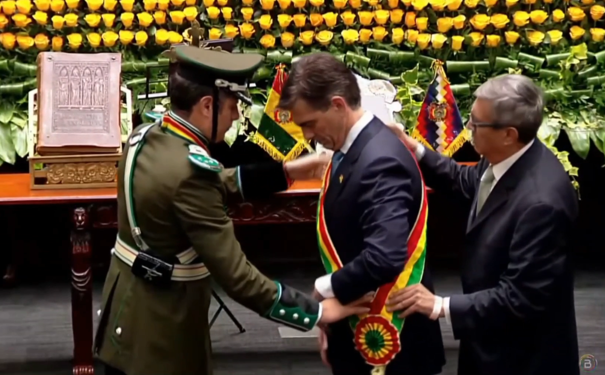«Dios, patria y familia, sí, juro», sostuvo el nuevo mandatario boliviano al tomar juramento.