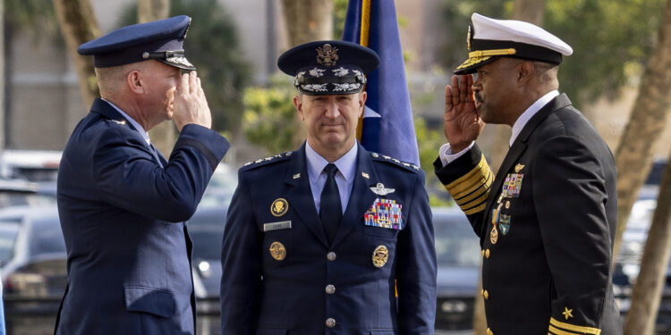 La ceremonia fue presidida por el jefe del Estado Mayor Conjunto, general Dan Caine, quien elogió la trayectoria del almirante saliente.