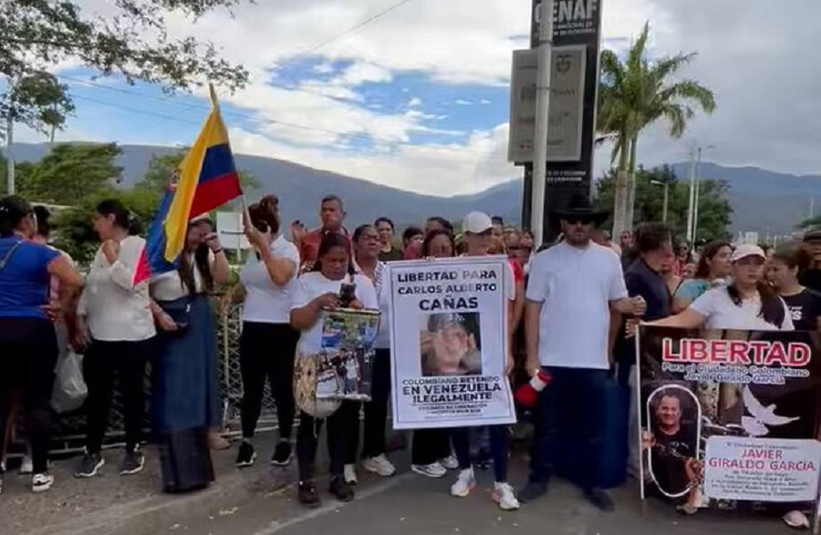 Familiares de más de 22 ciudadanos colombianos rehenes en Venezuela protestaron este martes en el Puente Internacional Simón Bolívar para exigir su liberación.