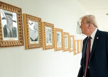 Trump instala placas en los retratos de Biden y Obama que los ridiculizan