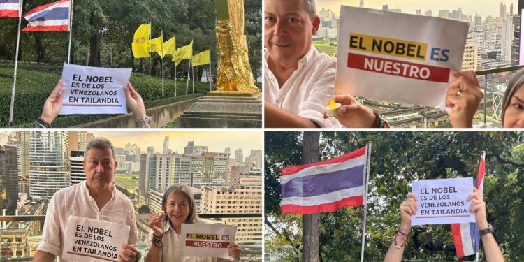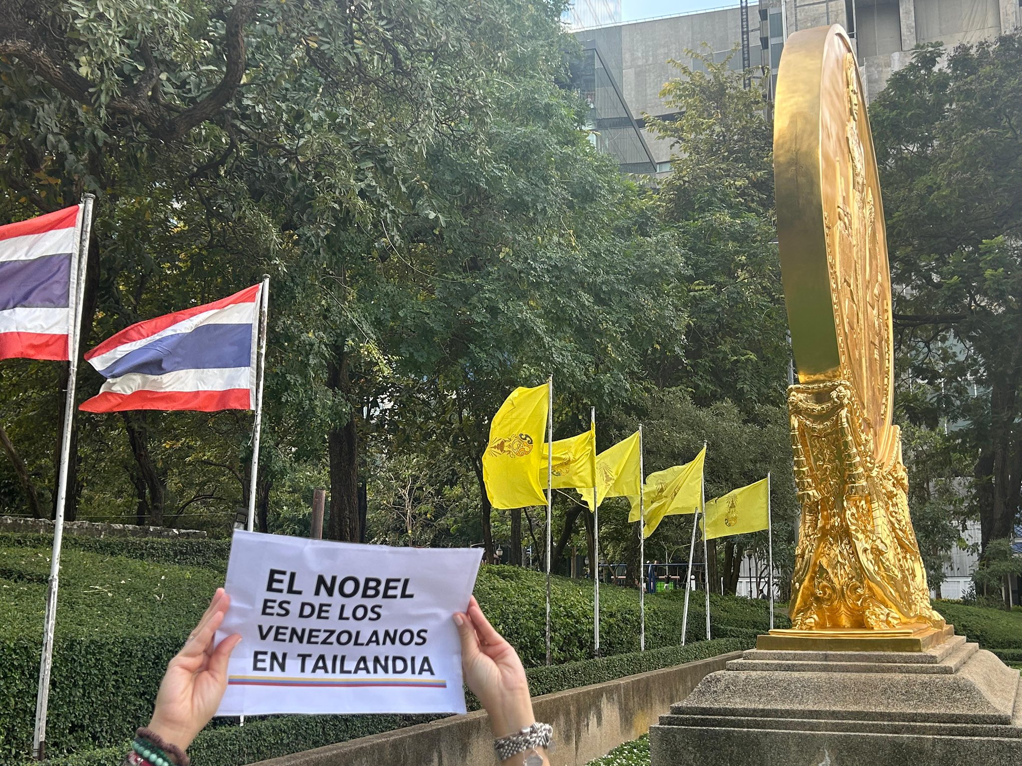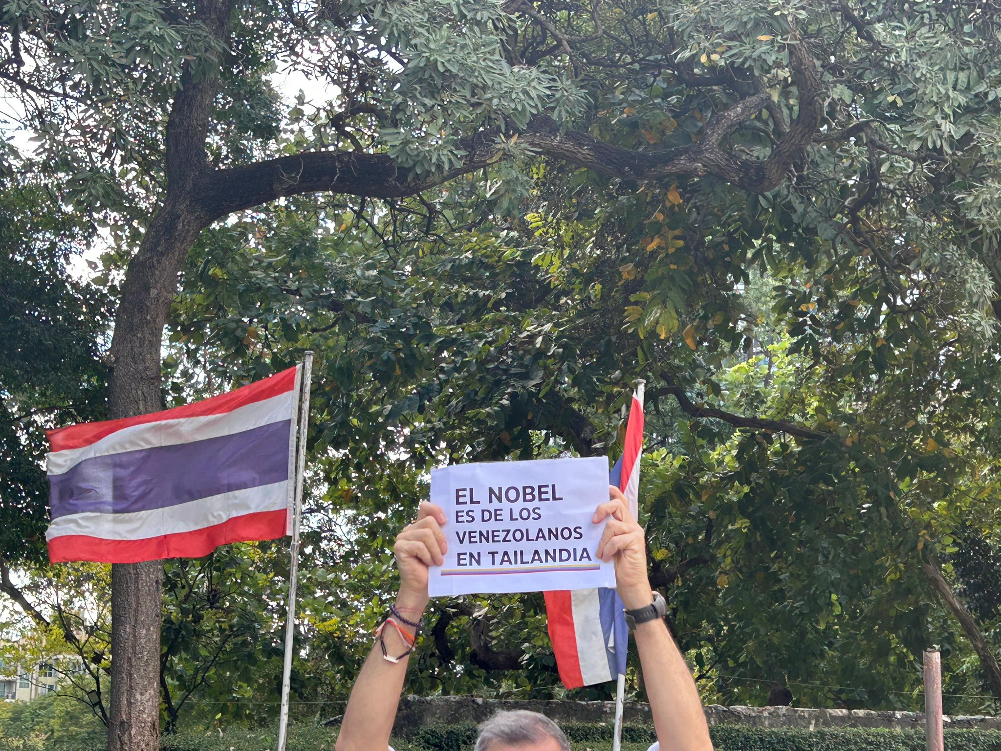 Los venezolanos en Tailandia se unieron a la marcha para celebrar el Premio Nobel de la Paz 2025 y pedir por la libertad del país, premio que fue otorgado a la líder opositora María Corina Machado, y que le será entregado este 10 de diciembre en la ciudad de Oslo, Noruega.