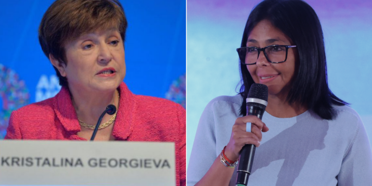 La encargada del régimen chavista, Delcy Rodríguez, confirmó este martes que sostuvo una conversación con la directora gerente del Fondo Monetario Internacional (FMI), Kristalina Georgieva, a quien le solicitó acceso a los aproximadamente 5.000 millones de dólares que Venezuela tiene acumulados en Derechos Especiales de Giro (DEG) en esa institución.