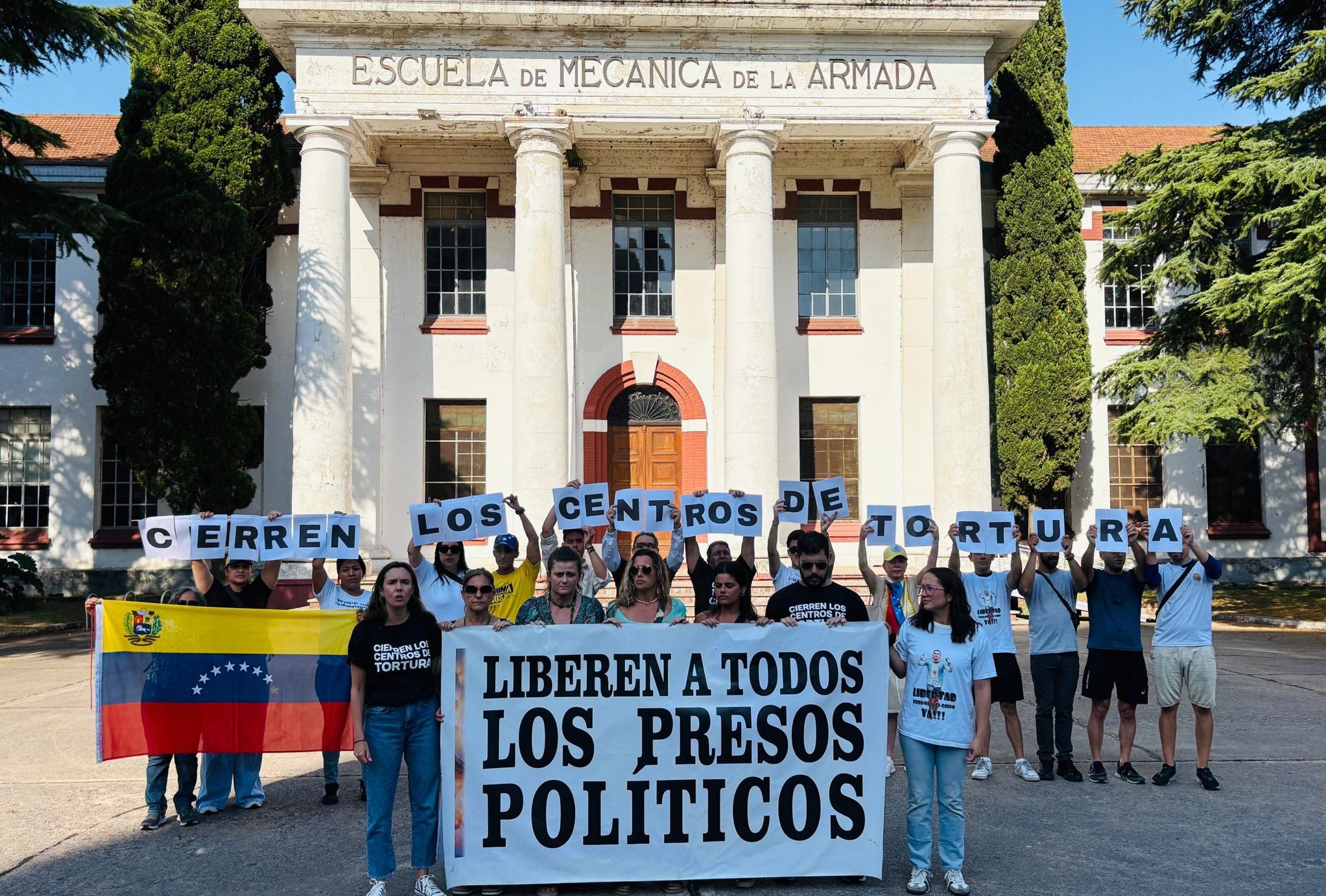 Desde la ESMA exigimos la libertad inmediata de TODOS los presos políticos y el cierre inmediato de TODOS los centros de tortura en Venezuela. pic.twitter.com/RsMwLNrXmu