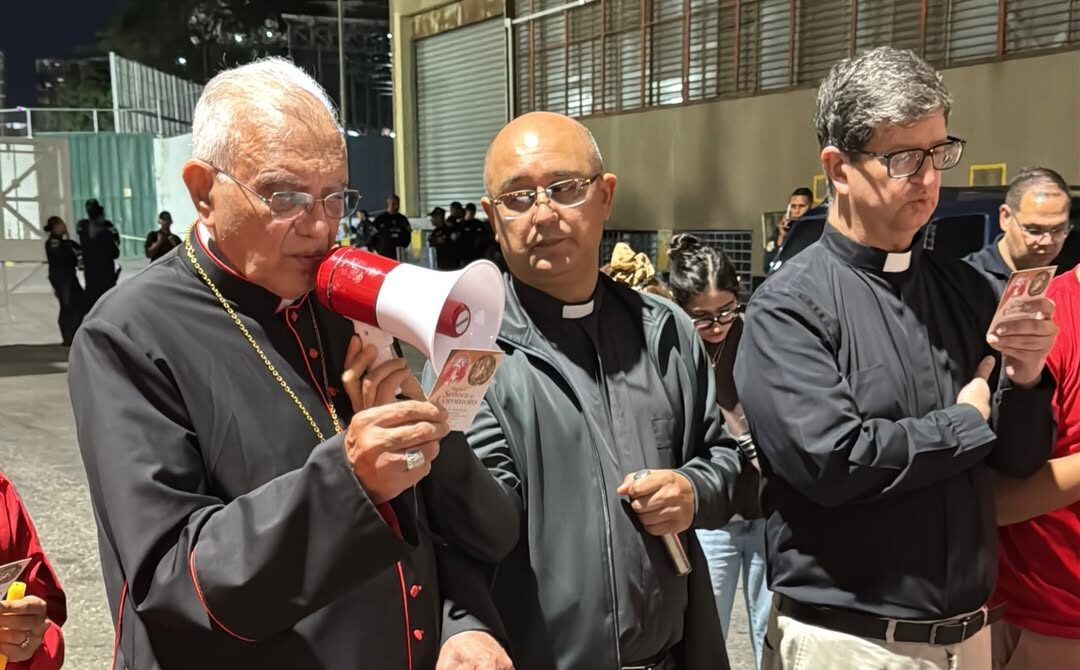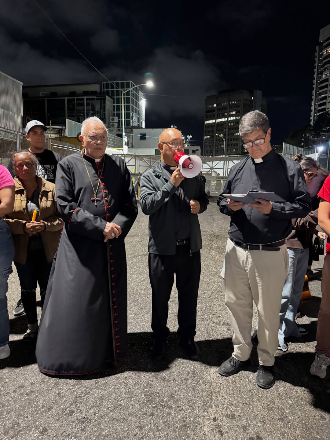 Cardenal Baltazar Porras acompañó a familiares de presos políticos en vigilia en Zona 7 PNB de Boleíta