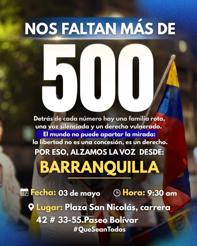 El comando ConVzla en el exterior convocó a realizar concentraciones en, al menos, nueve países de Latinoamérica con el objetivo de exigir la libertad plena de más de 500 presos políticos en Venezuela.