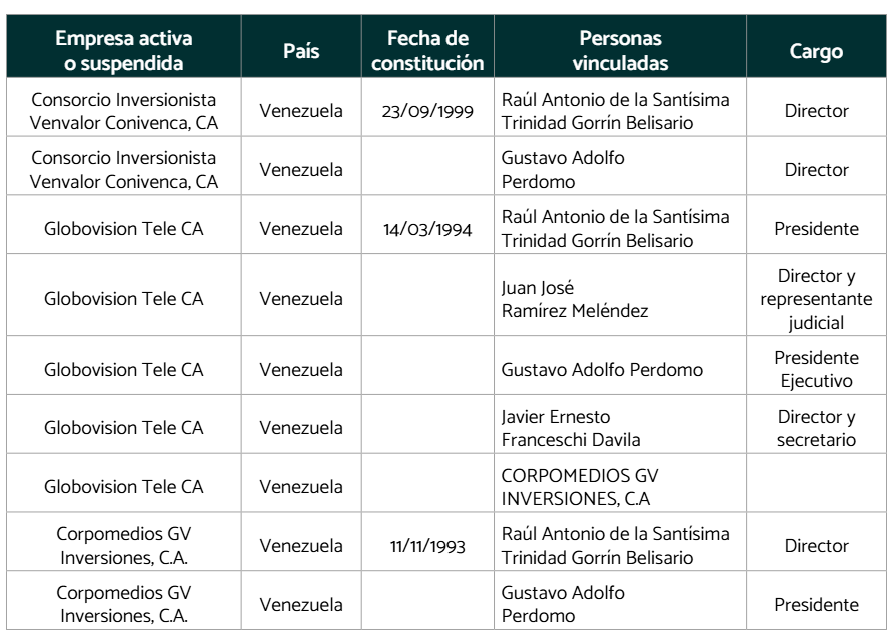 Red de empresas en las que aparece el nombre de Raúl Gorrín