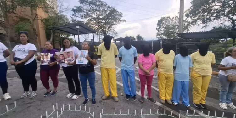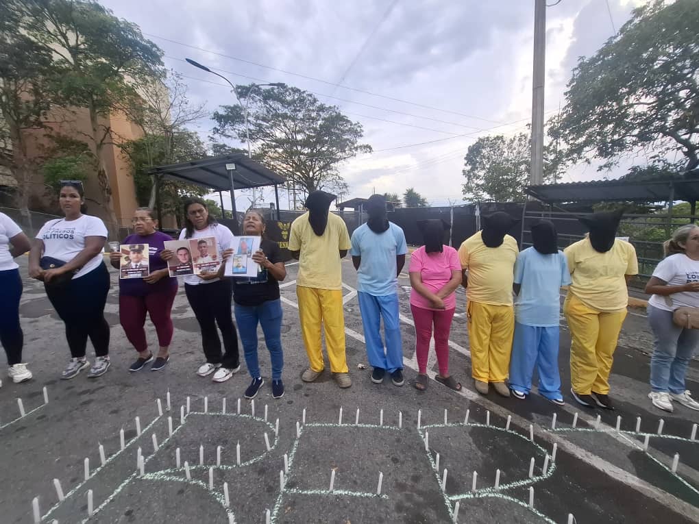 En un acto de profundo simbolismo, familiares de reclusos se concentraron este sábado frente al Centro Penitenciario El Rodeo I, en el estado Miranda, vistiendo capuchas y uniformes de la prisión para denunciar ante el mundo las condiciones inhumanas que se viven en las cárceles venezolanas y exigir la libertad inmediata de todos los presos políticos.