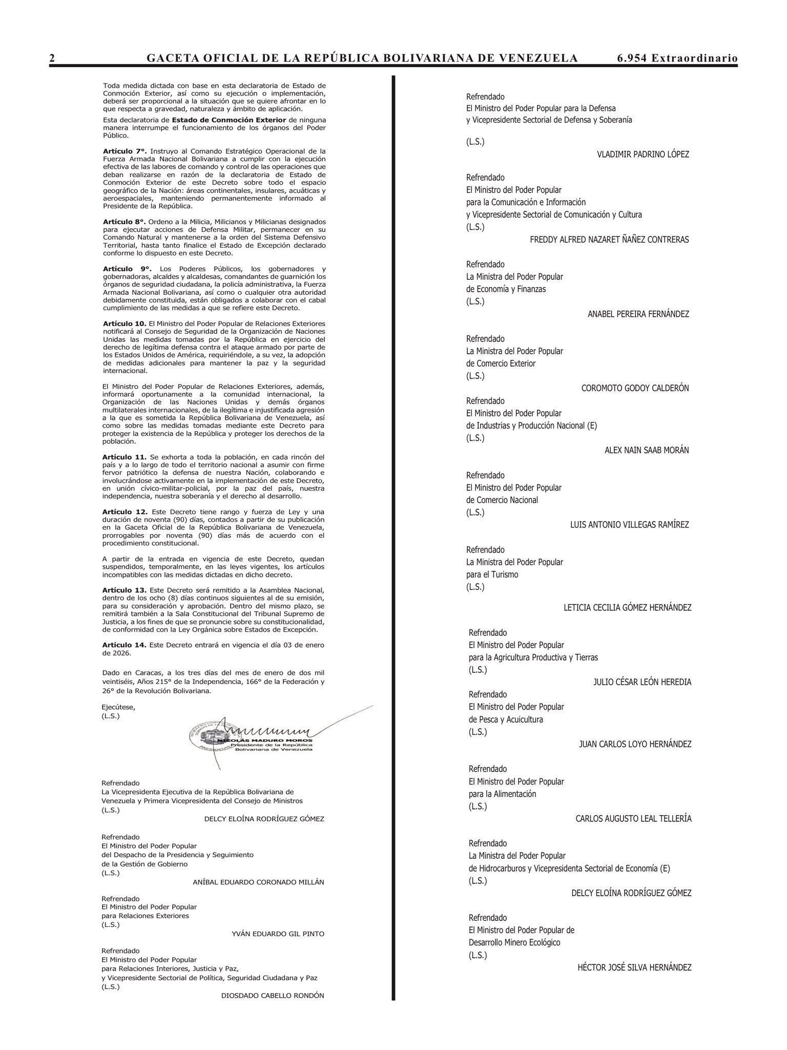 ` Decreto de Estado de Conmoción Exterior es publicado en la Gaceta Oficial Extraordinaria N.º 6.954 - Monitoreamos