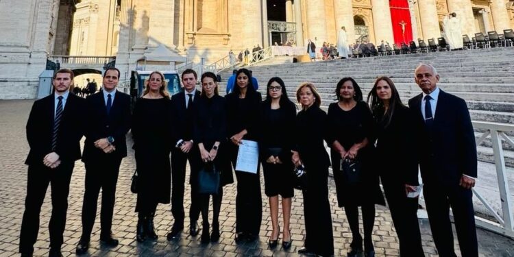 Una delegación de once venezolanos integrada por familiares de presos políticos, perseguidos, militares y representantes del gobierno electo venezolano de Edmundo González y la líder opositora María Corina Machado, está presente hoy en la misa de canonización del doctor José Gregorio Hernández y la Madre Carmen Rendiles presidida por el Papa León XIV en el Vaticano.