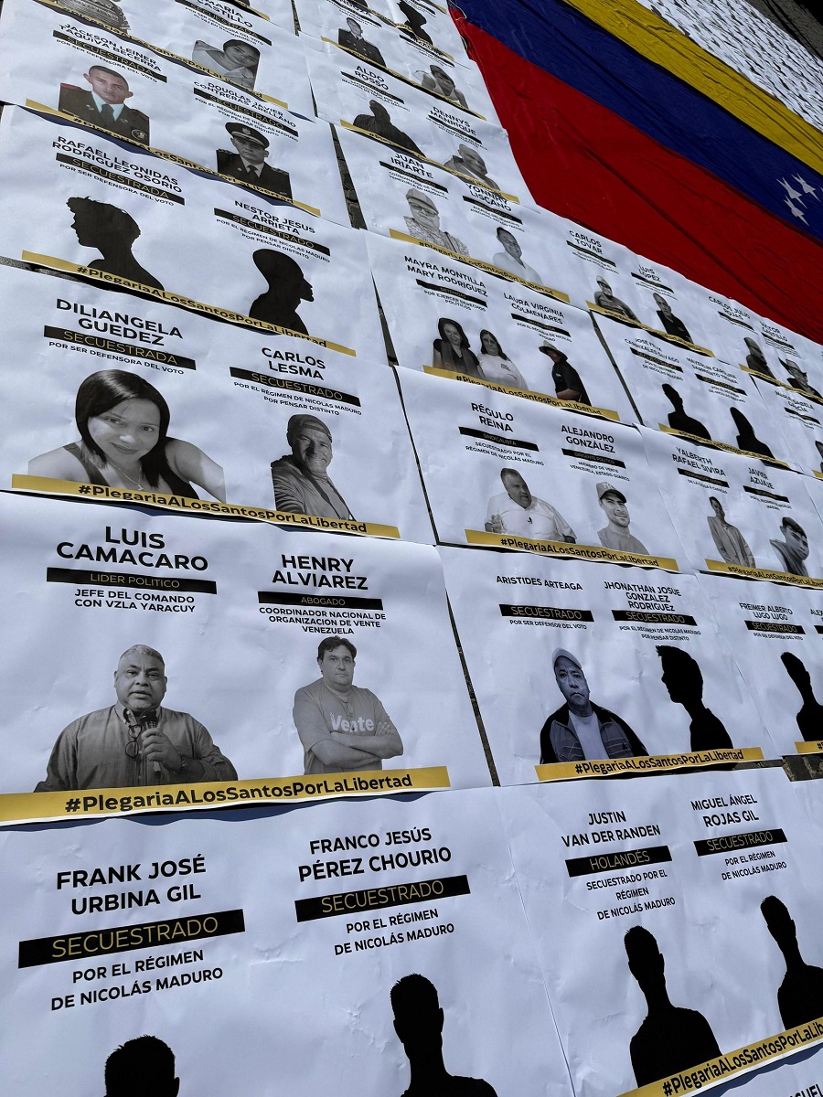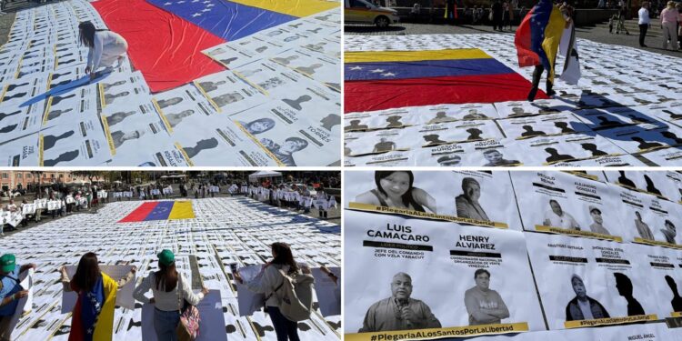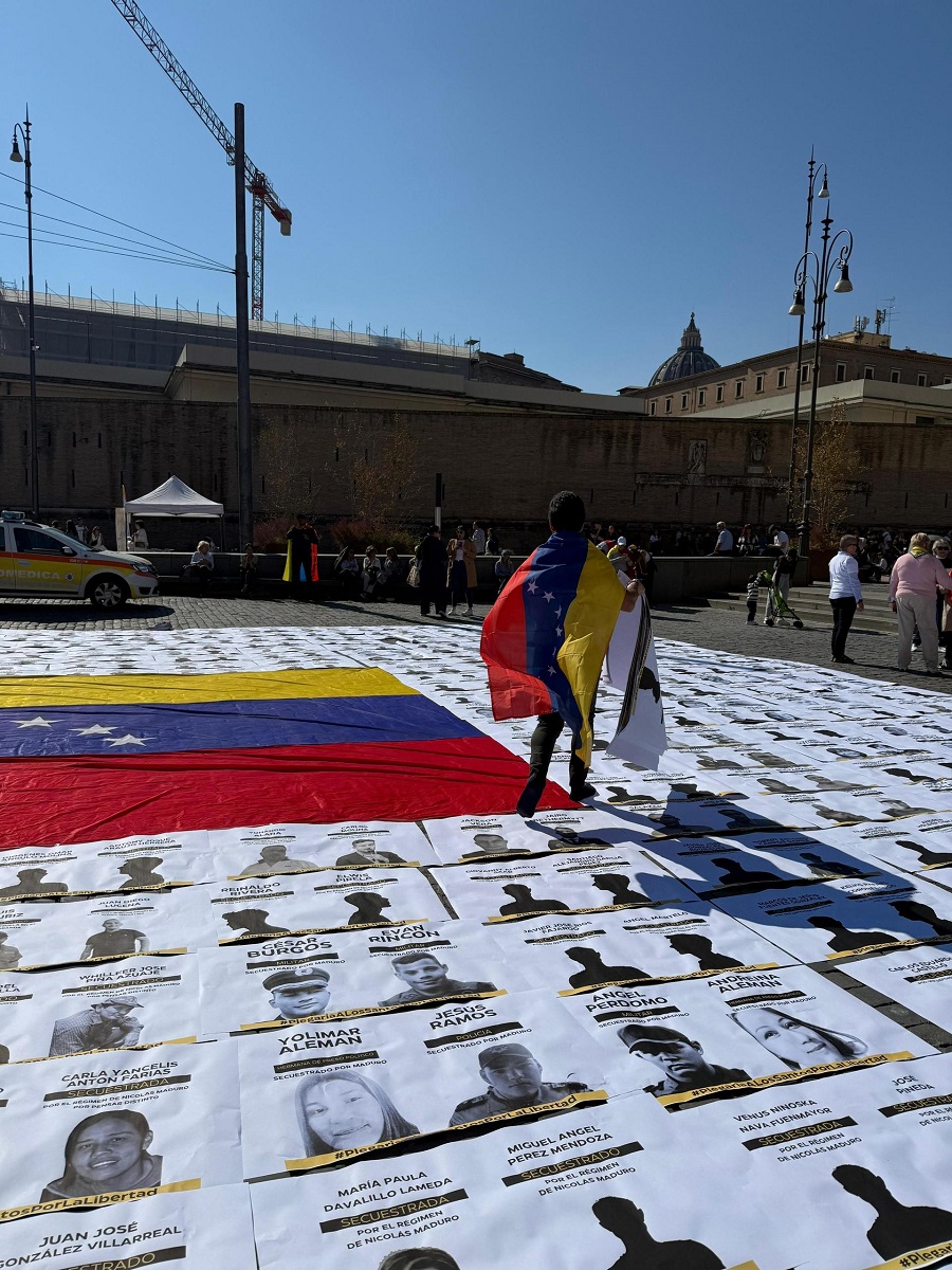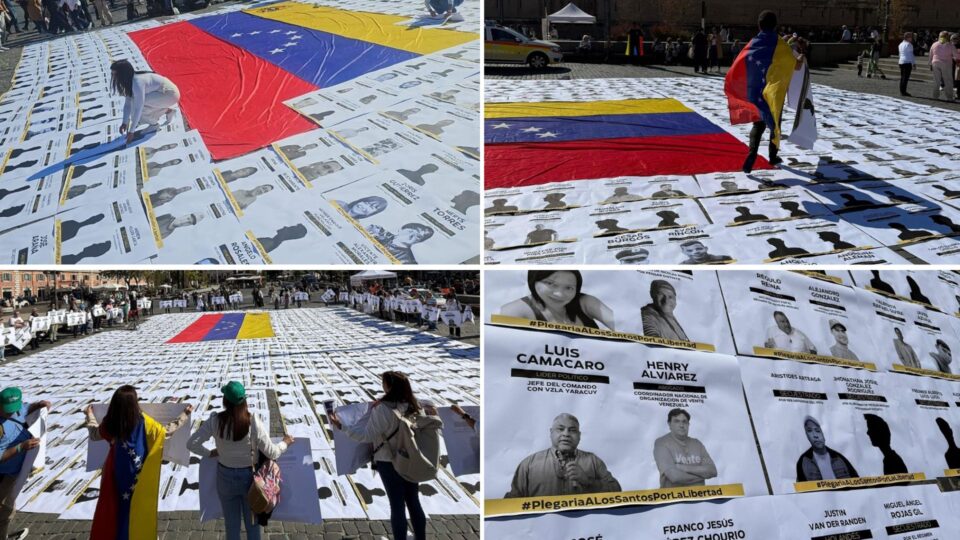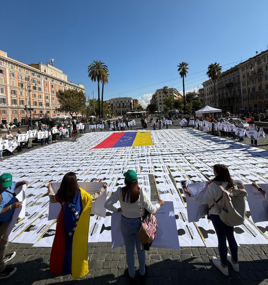 Familiares y activistas de derechos humanos se concentraron en Roma con fotografías impresas de más de 800 presos políticos venezolanos.