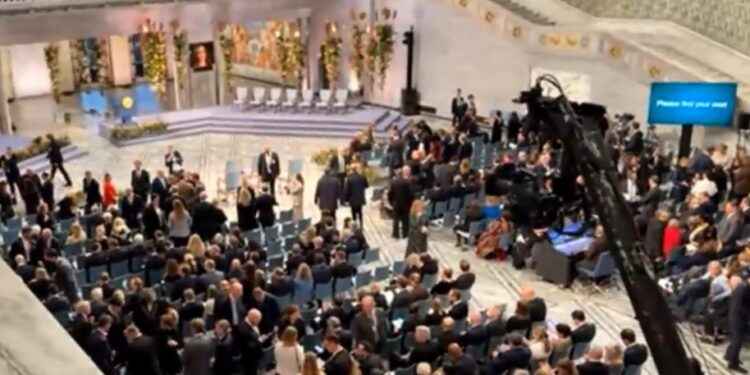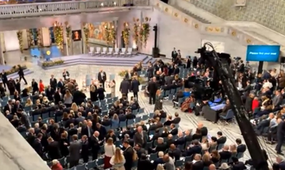 La ceremonia de entrega del Premio Nobel de la Paz 2025 inició este miércoles 10 de diciembre con la presencia de Ana Corina Sosa Machado, hija de la líder opositora María Corina Machado, quien recibió el galardón.