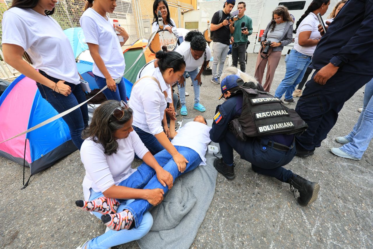 Ante la presión y tensión de los 19 días de protestas y vigilias, Marina Saldivia, quien tiene cuatro familiares allí detenidos, se descompensó luego de ver a sus dos hijos, nuera y nieta, desaparecidos desde finales de noviembre de 2025.
