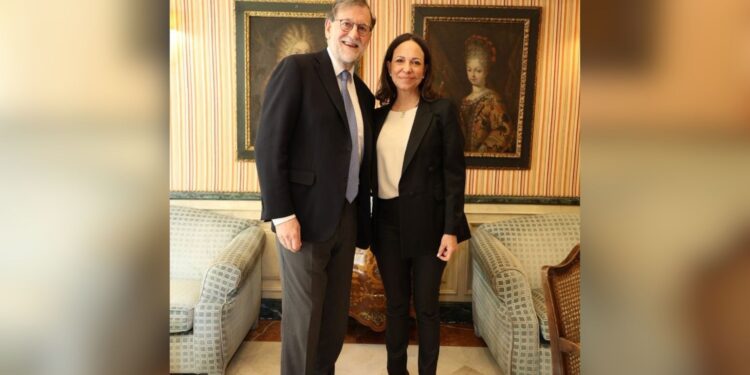 La líder venezolana y Premio Nobel de la Paz 2025, María Corina Machado, sostuvo este lunes una reunión con el expresidente del gobierno español, Mariano Rajoy, en Madrid, a quien agradeció el apoyo a la causa democrática en Venezuela.