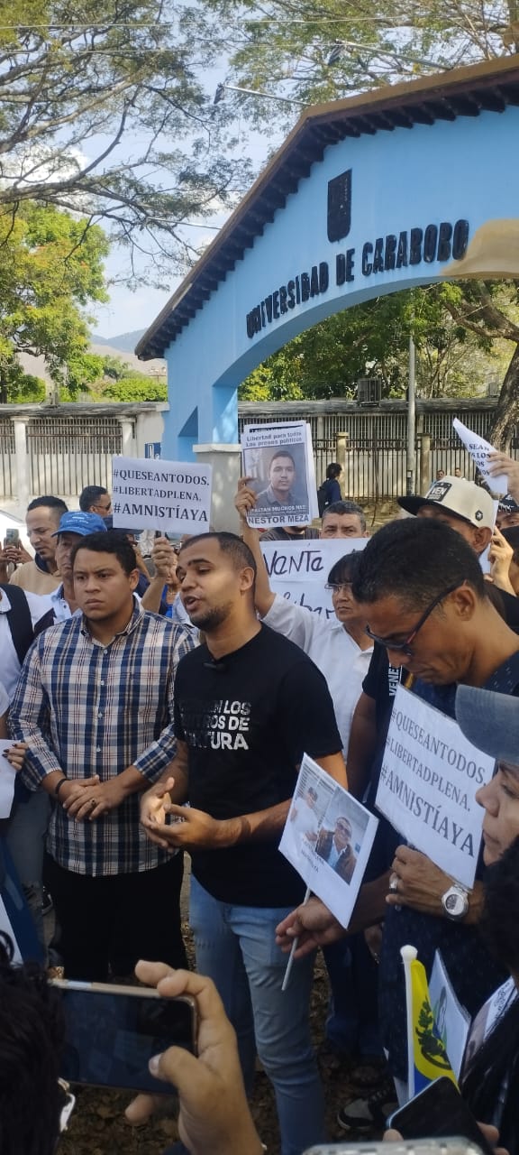 Hizo un lllamado a que todos los grupos estudiantiles de la Universidad de Carabobo se unan a la petición de una Ley de Amnistía general para todos los presos políticos», y pidió «que todos los sectores que hacen vida en el campus universitario que se integren en la lucha».