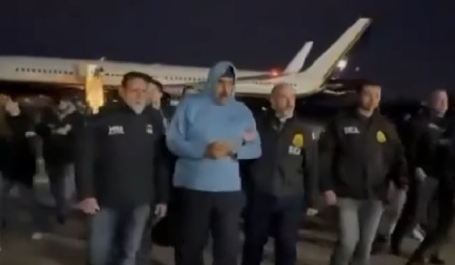 Nicolás Maduro descendió este sábado esposado del avión militar Boeing 757 que lo trasladó a Nueva York en medio del amplio operativo de custodia que lo acompaña.
