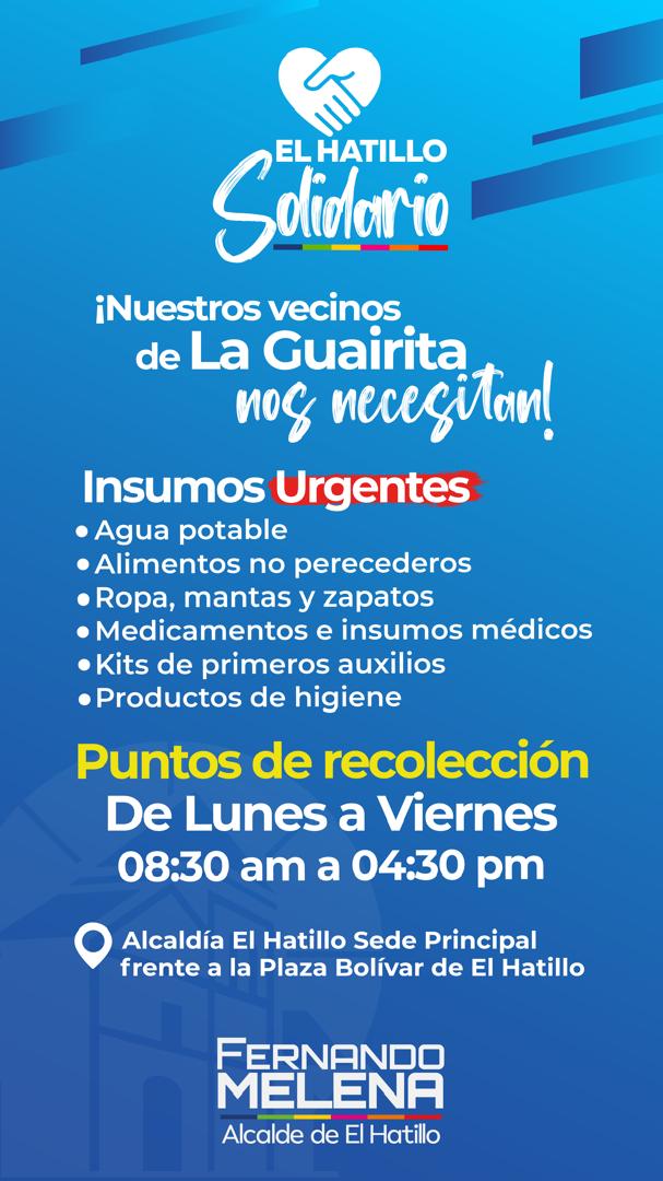 El alcalde Melena también pidió la solidaridad de los venezolanos para los vecinos afectados: