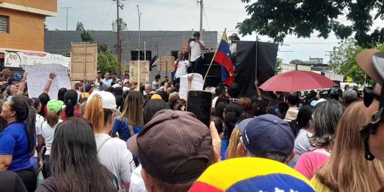 La marcha que partió en el sector La Floresta y culminó frente a la iglesia Nuestra Señora del Carmen, se mantuvo bajo el ojo de funcionarios del Sebin y Dgcim, fácilmente identificados por los manifestantes.