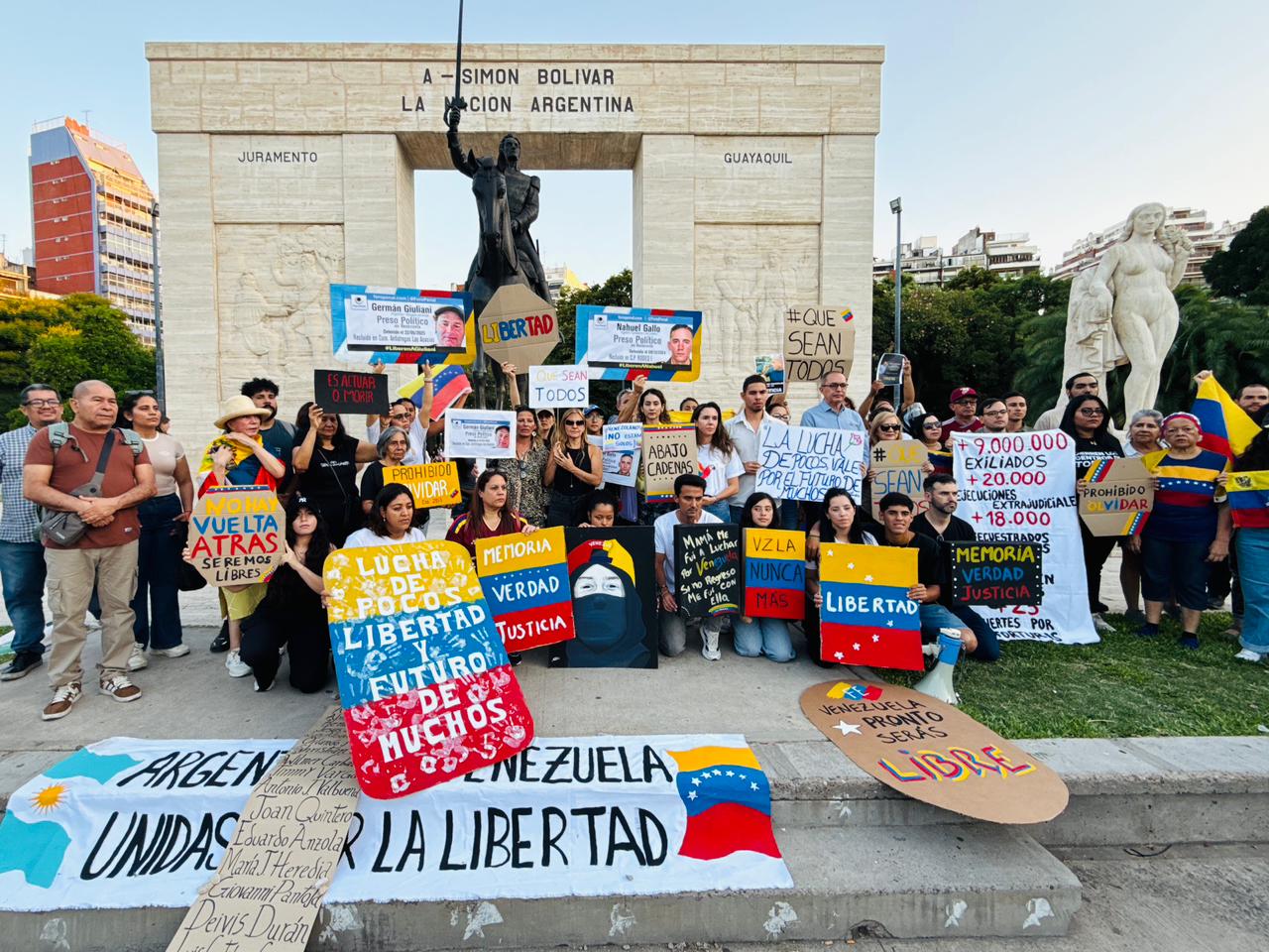 En el marco del Día de la Juventud en Venezuela, decenas de venezolanos residentes en Argentina se reunieron este domingo en el monumento a Simón Bolívar, en el Parque Rivadavia de Buenos Aires, para rendir homenaje a los jóvenes asesinados por la represión chavista y exigir justicia, reparación y la liberación inmediata de todos los presos políticos.