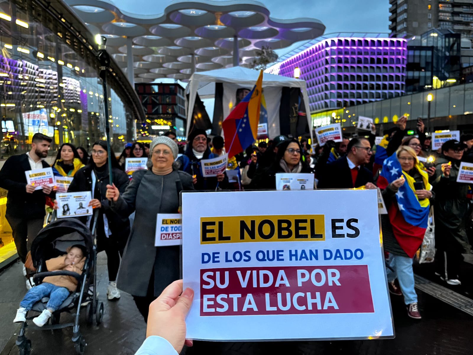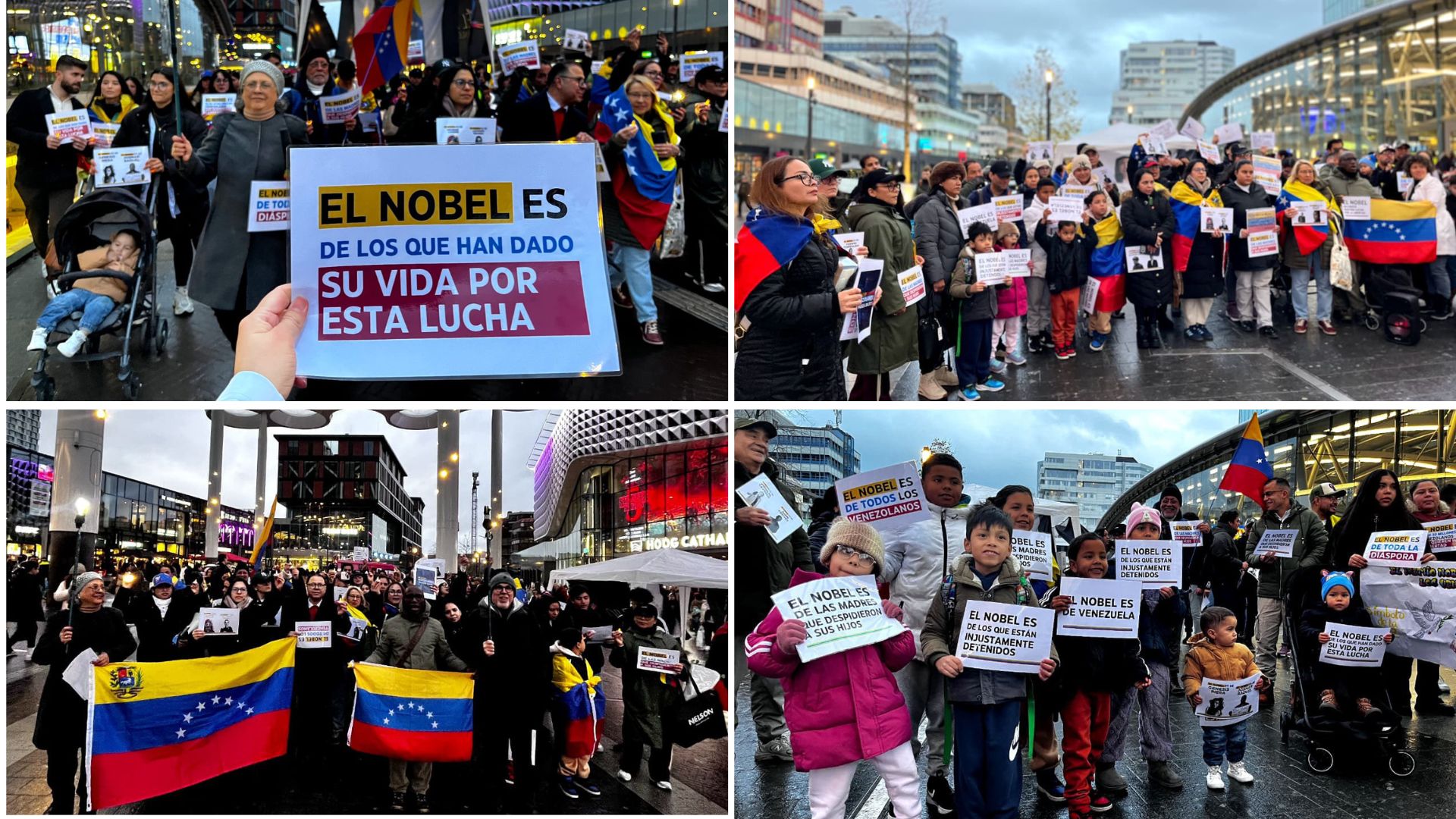 «El Nobel de la Paz hoy lleva nombre venezolano. Constancia, valentía y coraje nos definen. No es solo un premio, es el reconocimiento a un pueblo que nunca se rinde», afirmaron los venezolanos en la ciudad de Utrecht.
